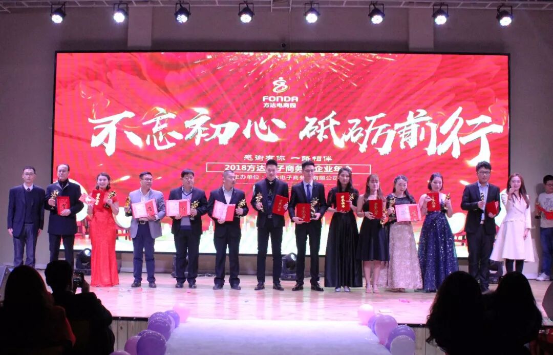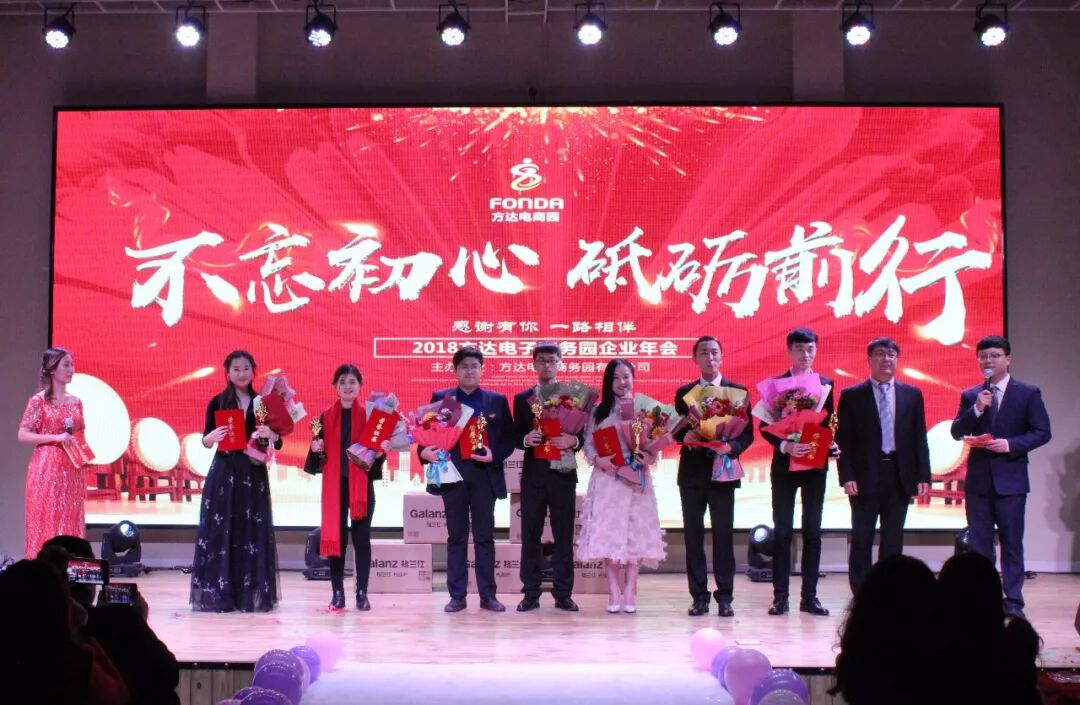 斗转星移,岁月荏苒,转眼间山东方达电子商务园有限公司(以下简称“方达电商园”)已走过三年的风风雨雨。这三年来,我们踌躇满志,锐意创新,拼搏进取;这三年来,我们斗志昂扬,携手共进,激情澎湃。在不断变幻的市场风云中,我们秉承理念,乘风破浪,势不可挡;在日趋激烈的竞争中,我们互持互助,凯歌高奏,尽显王者风范。2月10日下午,方达电商园2018年年会盛典在路演大厅精彩上演,全体员工、亲朋好友以及客户伙伴齐聚一堂,聆听公司领导的新年致辞,为优秀团队和个人喝彩,观赏精心编排的创意节目,迎接崭新的2018年。